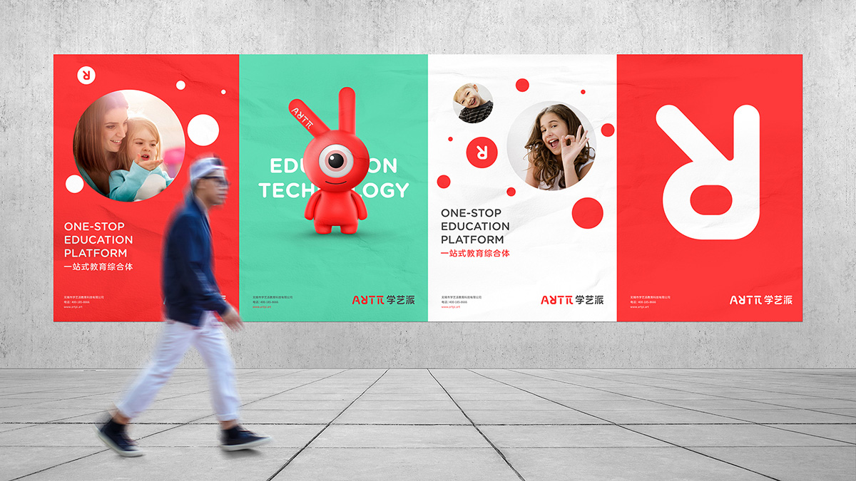 設計中我們以孩子喜歡的動物——兔子為視覺創造載體,把機靈、聆聽、思考、創作融入品牌標識,簡單直白!