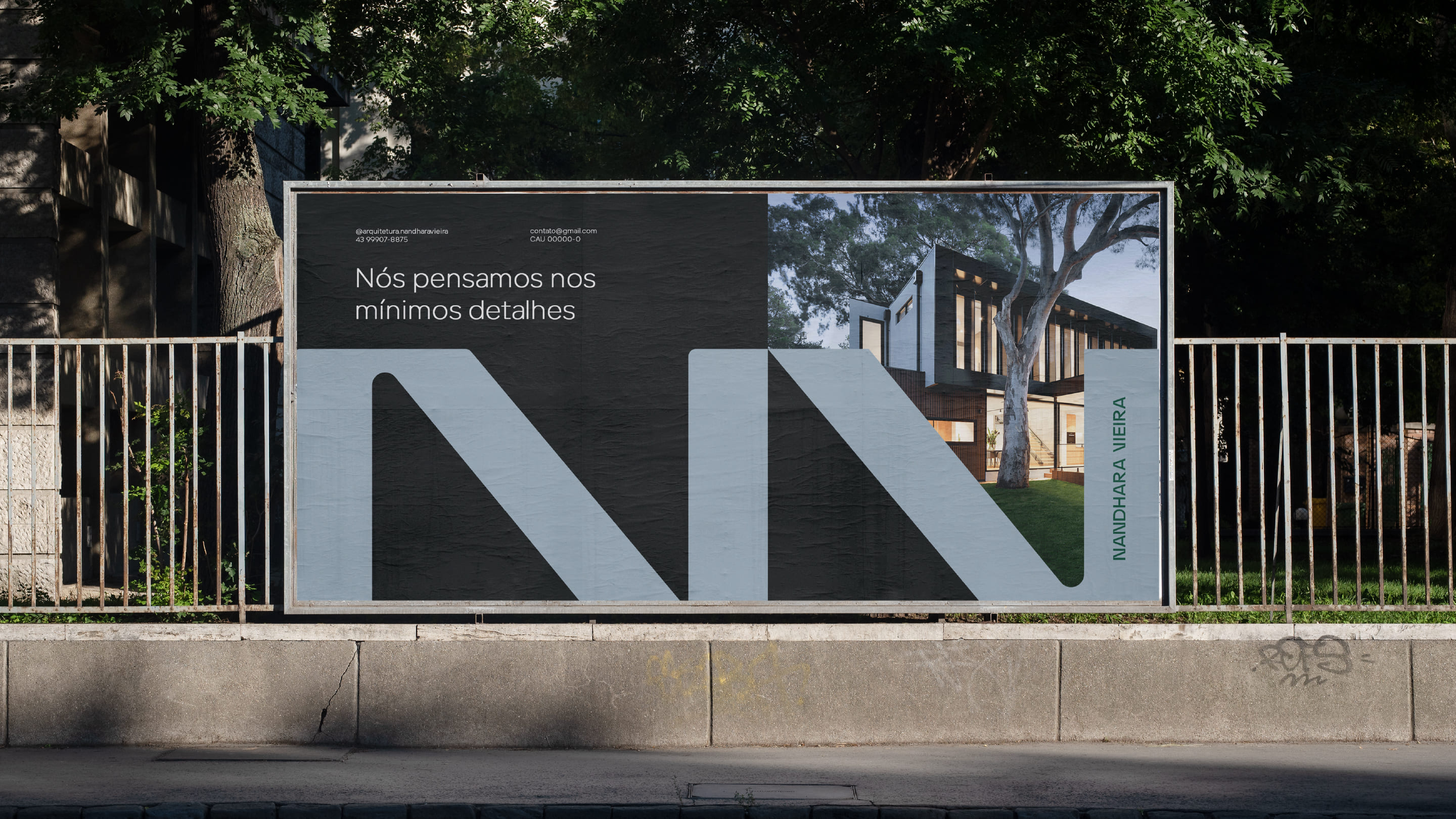 品牌設(shè)計(jì),該標(biāo)志是根據(jù)品牌字母、現(xiàn)代建筑和維特魯威三合會(huì)開(kāi)發(fā)的,該概念代表了建筑的 3 個(gè)主要元素:穩(wěn)定性、美觀和便利/功能。因此,符號(hào)的右半部分帶來(lái)透視方面(功能),而另一半形成字母 N 和 V。此外,符號(hào)的構(gòu)造帶有曲線和直線,這是現(xiàn)代建筑和現(xiàn)代建筑中存在的一個(gè)方面。尼邁耶的作品。