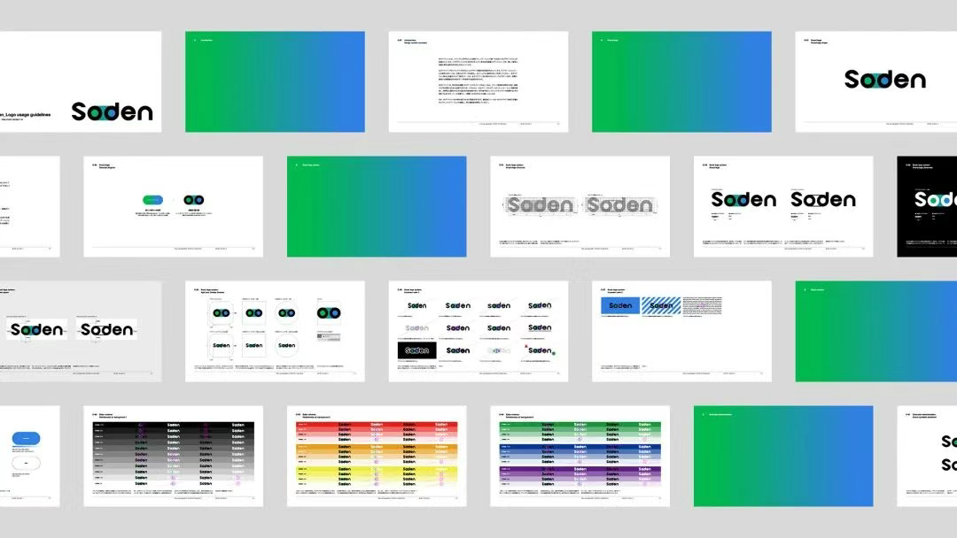 與此同時,設計師重新提取并調(diào)整舊LOGO中的色彩,將其作為有機流動的視覺元素,與主標識搭配使用,以表達能源流動、技術(shù)融合和業(yè)務拓展的內(nèi)涵。操電(Soden)的舊LOGO由日本平面設計機構(gòu) enhanced 于2023年設計完成。